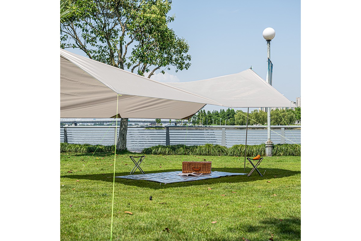 - Влагозащитный и водостойкий — слой алюминиевой фольги и PE полиэтилен защищает от сырости и холода, создавая комфортное место для отдыха.