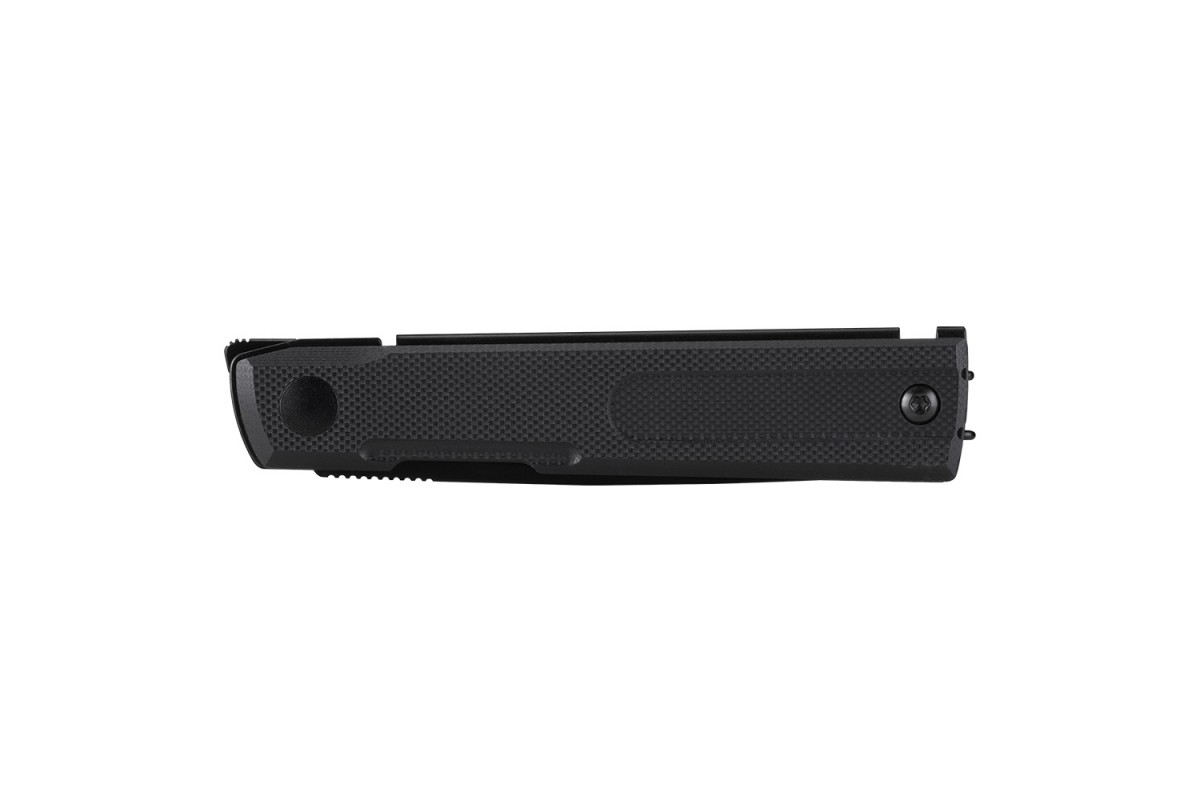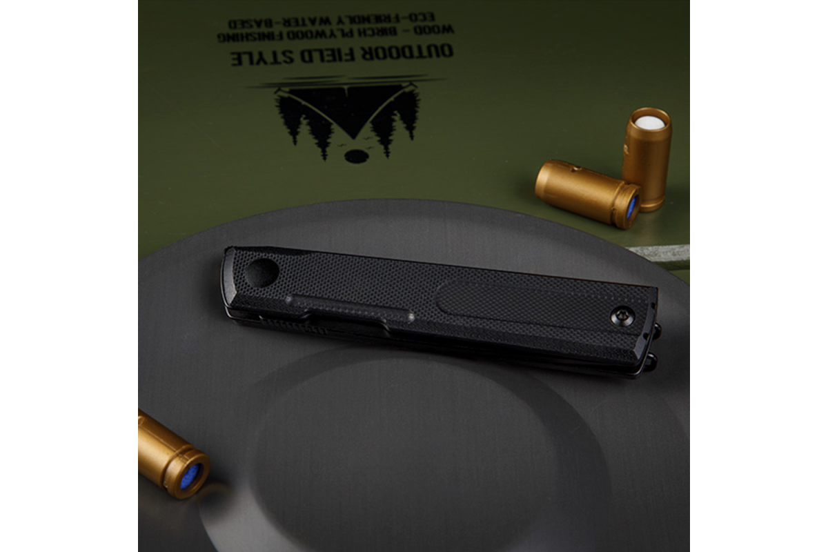 Клинок выполнен из нержавеющей стали 8Cr13MoV с твердостью 57–59 HRC. Такая сталь обеспечивает хорошую износостойкость, устойчивость к коррозии и легкость в заточке — все, что нужно для качественного ножа на каждый день. Рукоятка изготовлена из композитного материала G10 — прочного, легкого и влагостойкого стеклотекстолита. Обновленный дизайн в черном цвете придает ножу практичный тактический внешний вид, а текстурированная поверхность рукоятки обеспечивает уверенное сцепление даже в сложных условиях.
