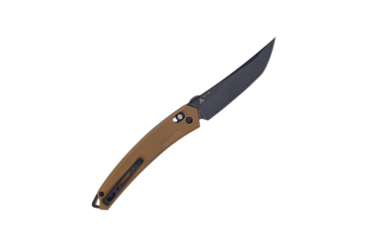 Клинок выполнен из нержавеющей стали 8Cr13MoV — популярного сплава, хорошо сбалансированного по характеристикам: он устойчив к коррозии, хорошо держит заточку и легко обслуживается. Закалка до твердости 57–59 HRC обеспечивает необходимую прочность для большинства повседневных задач. Форма клинка — Clip Point: острый кончик идеально подходит для прокалывания, а удлиненная режущая кромка — для эффективного реза и строгания. Черное покрытие придает ножу сдержанный тактический стиль и снижает отражение света.