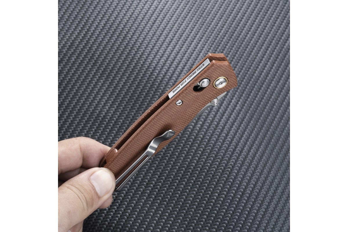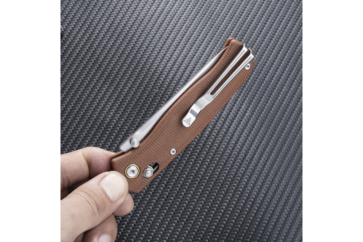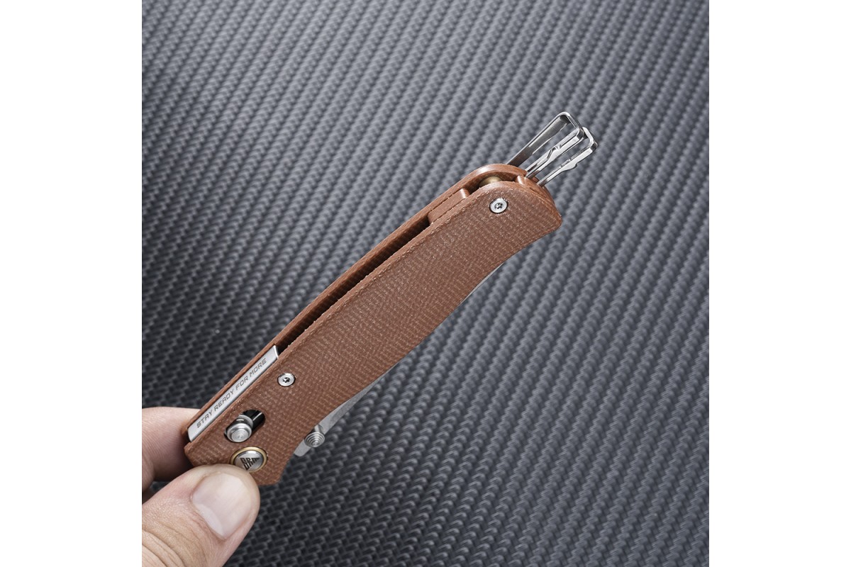 Рукоять выполнена из микарты — материал представляет собой слоистый пластик на основе ткани или бумаги и полимерного связующего вещества. Он не скользит, не впитывает запахи и комфортен для руки. Микарта долговечна, устойчива к значительным перепадам температуры, и не реагирует с большинством химических веществ. В осевом узле установлен керамический подшипник, который обеспечивает плавное и быстрое открытие лезвия. SRM 255L-MN Medal — отличный выбор для тех, кто ценит компактность, технологичность и надёжность в ежедневном ношении и работе.