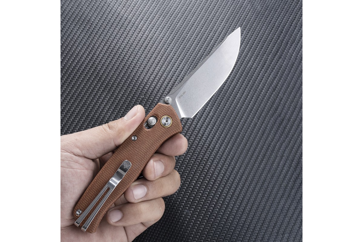 Клинок выполнен из стали 10Cr15CoMoV — твёрдого и износостойкого материала, аналогичного VG-10. Твердость 59–61 HRC обеспечивает длительное удержание заточки. Благодаря технологии охлажденной заточки, режущая кромка остается острой дольше, не теряя рабочих свойств. Финиш ножа Stonewash — на клинке будут незаметны мелкие царапины тактический внешний вид и повышает его стойкость к коррозии и износу.