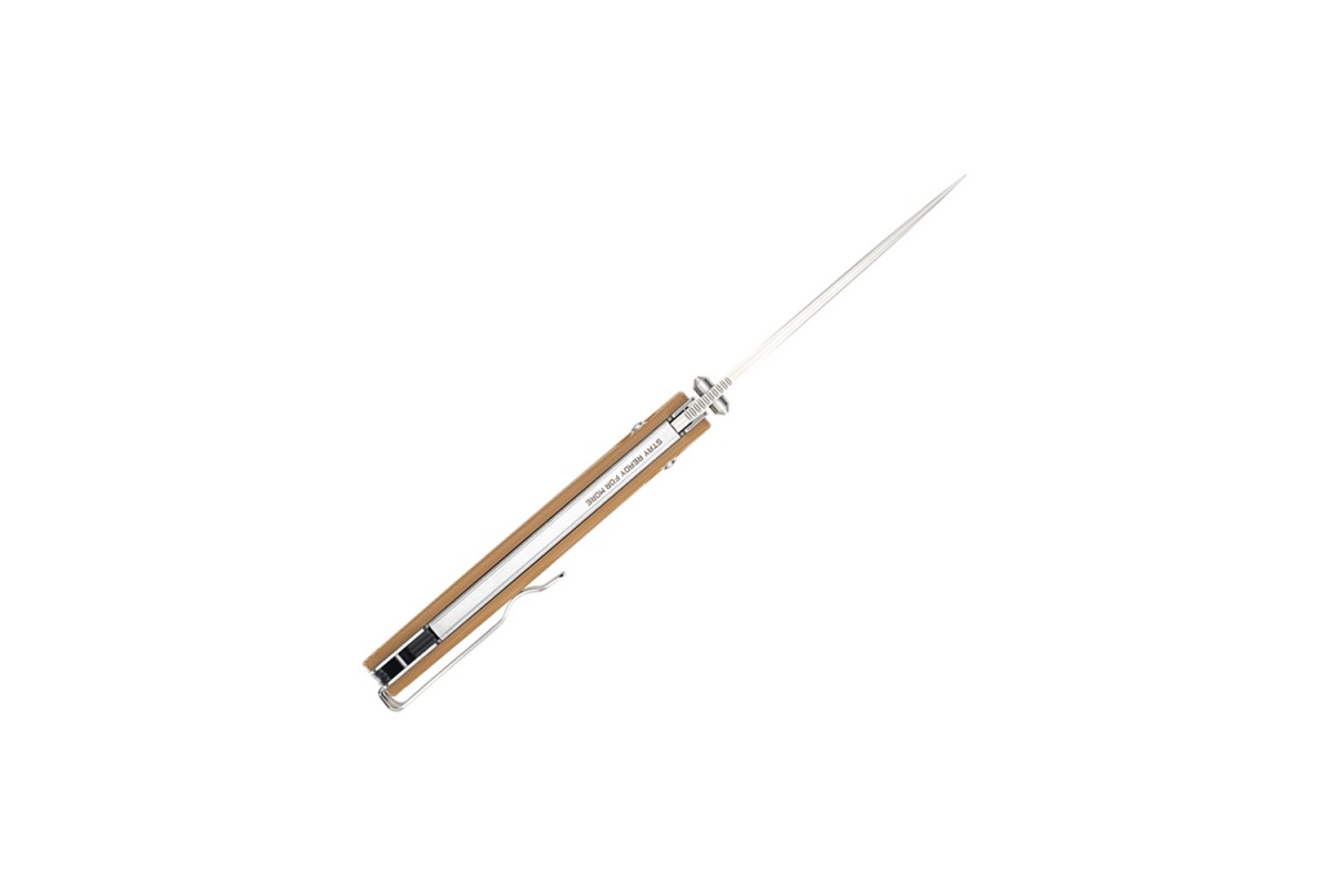 Рукоять выполнена из прочного и надежного стеклотекстолита G10, обладающего высокой устойчивостью к влаге и механическим повреждениям. В осевом узле установлен керамический подшипник, обеспечивающий мягкое, быстрое и точное открытие. Замок Ambi Lock, основанный на поперечном штифте, предотвращает самопроизвольное закрытие даже под высокой нагрузкой. Нож легко управляется одним пальцем, что выгодно отличает его от многих аналогов с менее удобной системой.