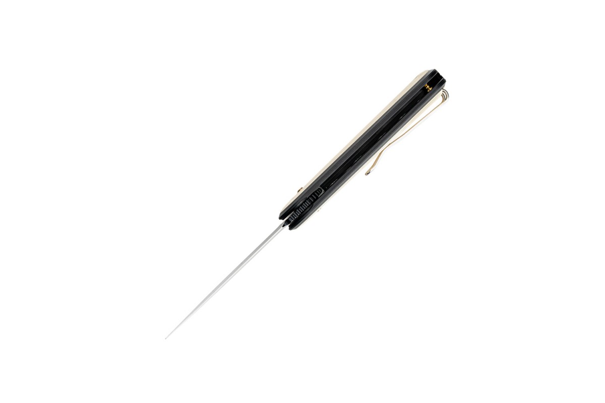 SRM Twin весит всего 70г, а клинок длиной 76 мм выполнен из нержавеющей стали N690 с твёрдостью 58–60 HRC, что обеспечивает хорошее удержание кромки и устойчивость к коррозии. Финишная обработка Ti-coat придаёт клинку стильный вид и существенно улучшает износостойкость. Форма клинка — dagger (кинжал) — хорошо подходит для точных резов и проколов, сохраняя баланс между эстетикой и функциональностью.