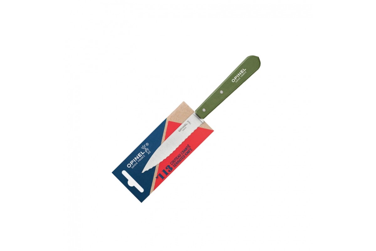 Нож столовый Opinel №113, деревянная рукоять, блистер, нержавеющая сталь, темно-зеленый 003122