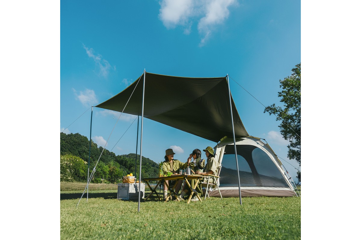 Размеры палатки - 200×200×145 см, вес - около 7 кг, сложенный размер - 73×21×15 см. Двухслойная конструкция из ткани Oxford 150D PU2000 мм и дно из полиэстера обеспечивают надежную защиту от влаги. Каркас из стекловолокна устойчив к ветру, а москитная сетка B3 гарантирует комфорт даже в местах с насекомыми.