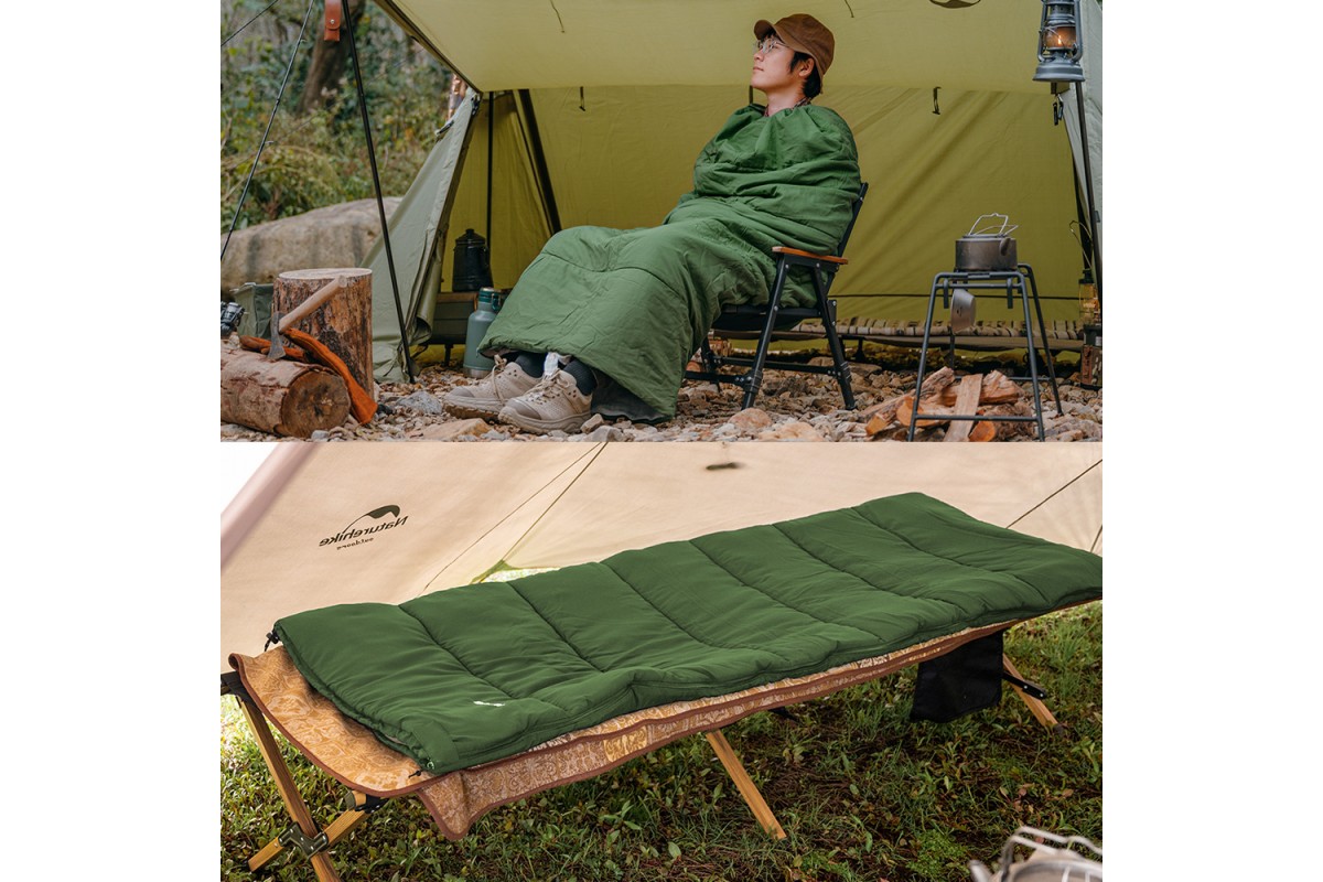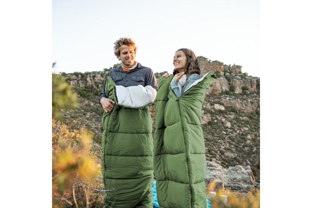Одним из практичных преимуществ является возможность полностью расстегнуть мешок и использовать его как одеяло. Благодаря этому он становится универсальным спутником в путешествии: можно укрыться вечером у костра, использовать как дополнительный слой или даже как подстилку. Ещё одна удобная функция — соединение двух спальников (левого и правого) в одно большое двуспальное пространство, что идеально для путешествий вдвоем.