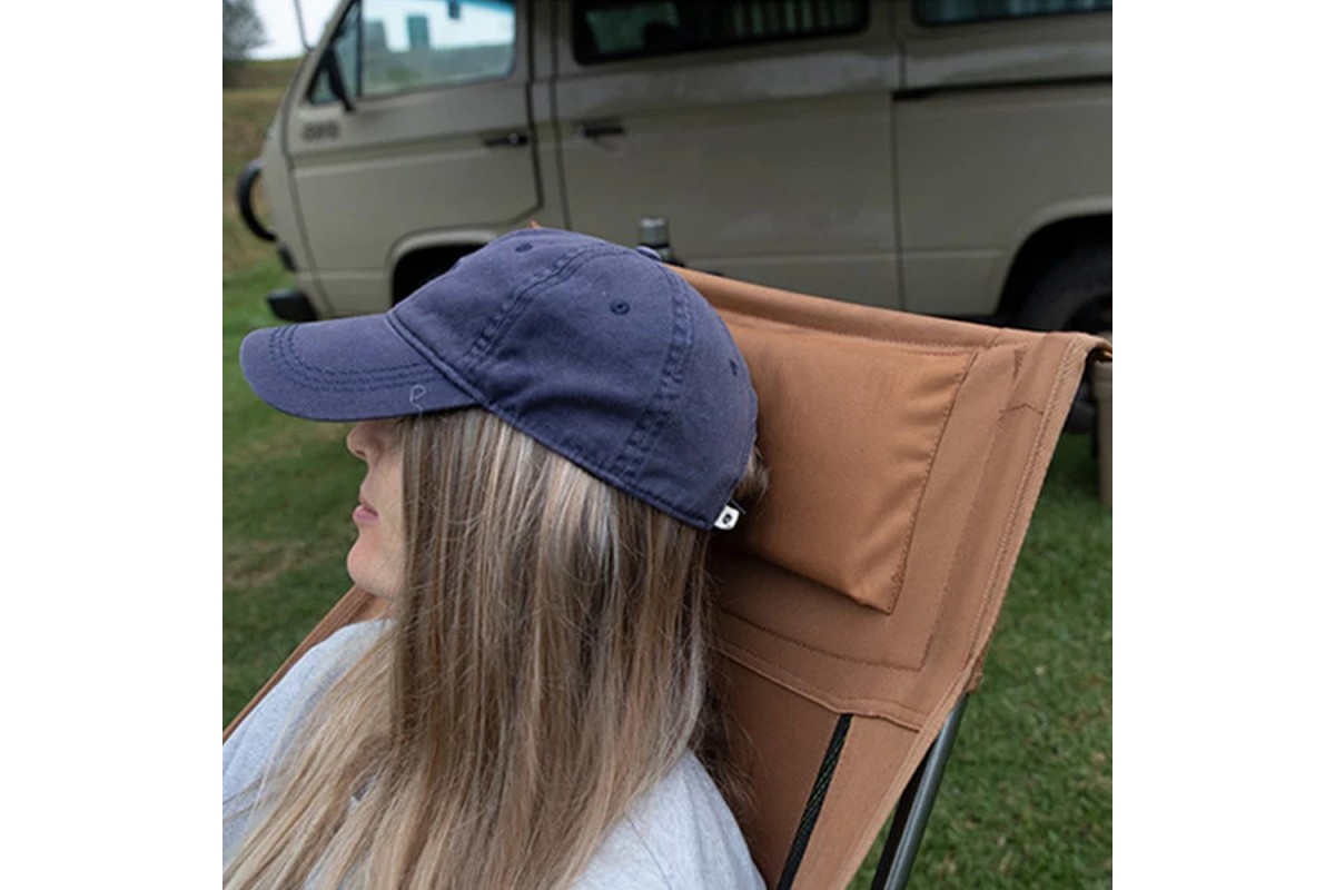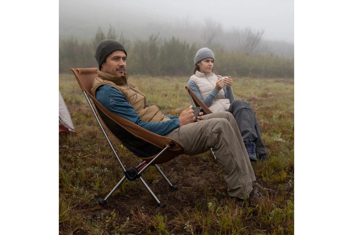 Кресло обладает высокой спинкой 103 см, что повышает уровень комфорта — спина получает поддержку, а отдых становится более расслабленным. Спинка также дополнена небольшим подголовником, который делает положение ещё более удобным при длительном отдыхе. Нескользящие наконечники на ножках улучшают устойчивость на мягкой или неровной поверхности. В комплектации предусмотрен чехол-переноска, благодаря которому кресло удобно хранить и переносить.