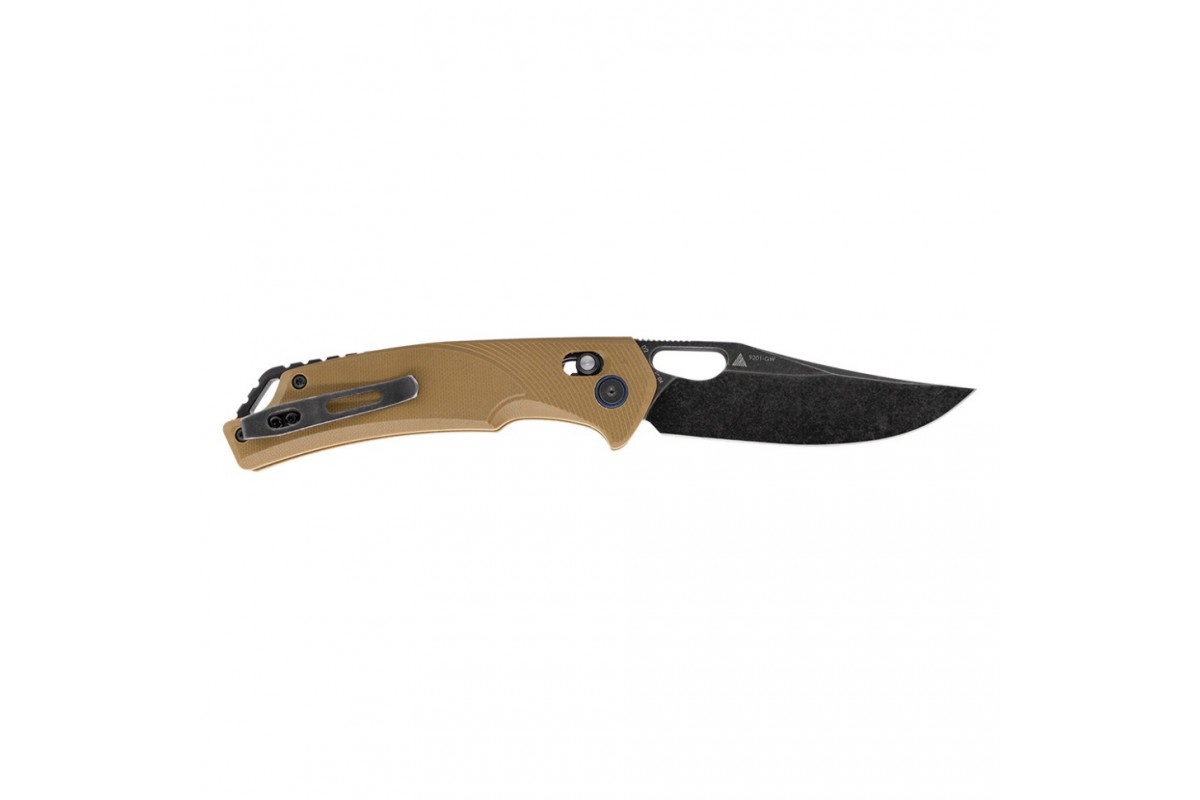Рукоять изготовлена из прочного G10 с текстурированной поверхностью, обеспечивающей надежное сцепление в любой ситуации. Стальные лайнеры внутри конструкции повышают ее прочность, а стальной шарикоподшипник в осевом узле гарантирует плавное и быстрое открытие. Все элементы конструкции продуманы для удобства и долговечности.