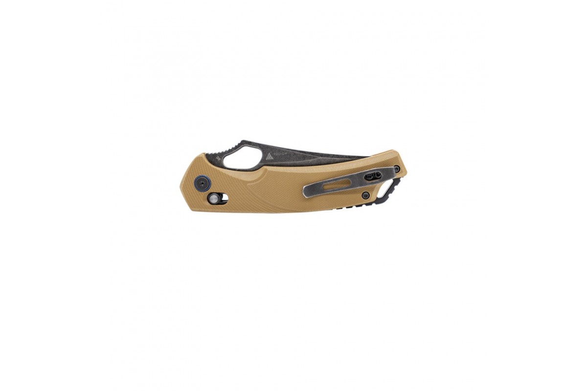 Рукоять выполнена из G10 — прочного и цепкого материала с текстурированной поверхностью. Она хорошо лежит в руке и не скользит даже во влажных условиях. Внутри расположены стальные лайнеры из нержавеющей стали 420, усиливающие конструкцию. Осевой узел с шарикоподшипником обеспечивает плавное и быстрое открытие, а замок Ambi Lock надежно фиксирует клинок и безопасен в работе.