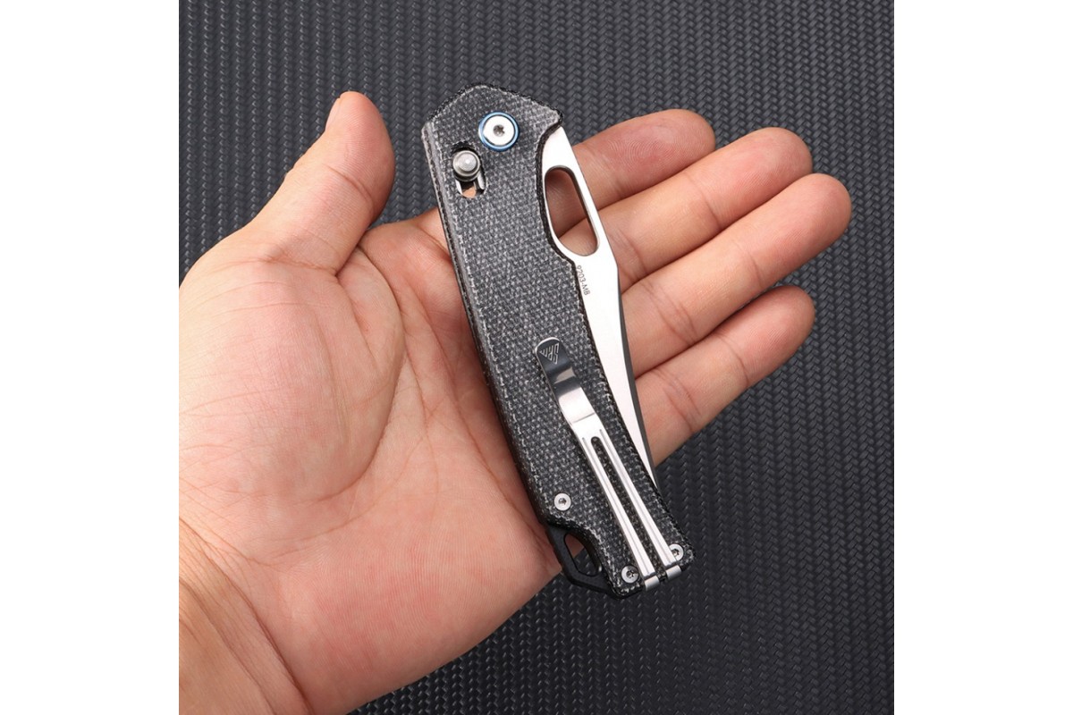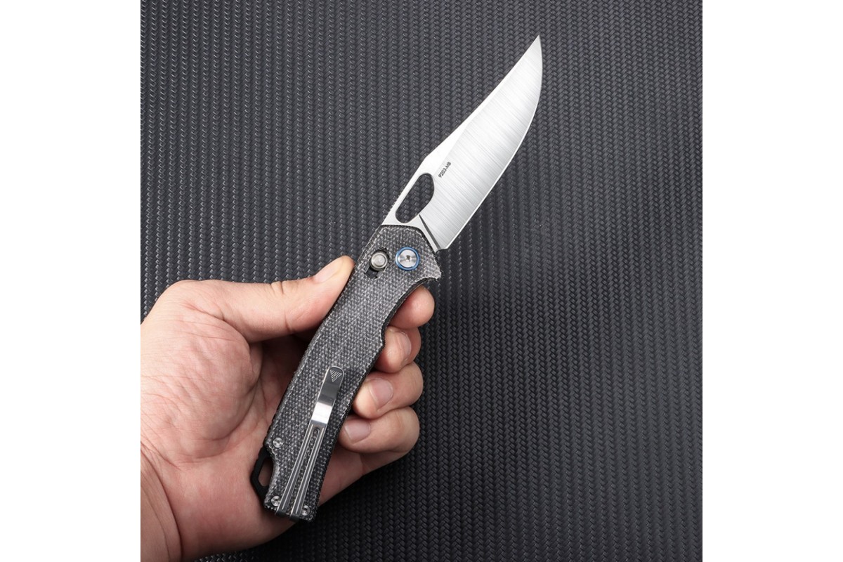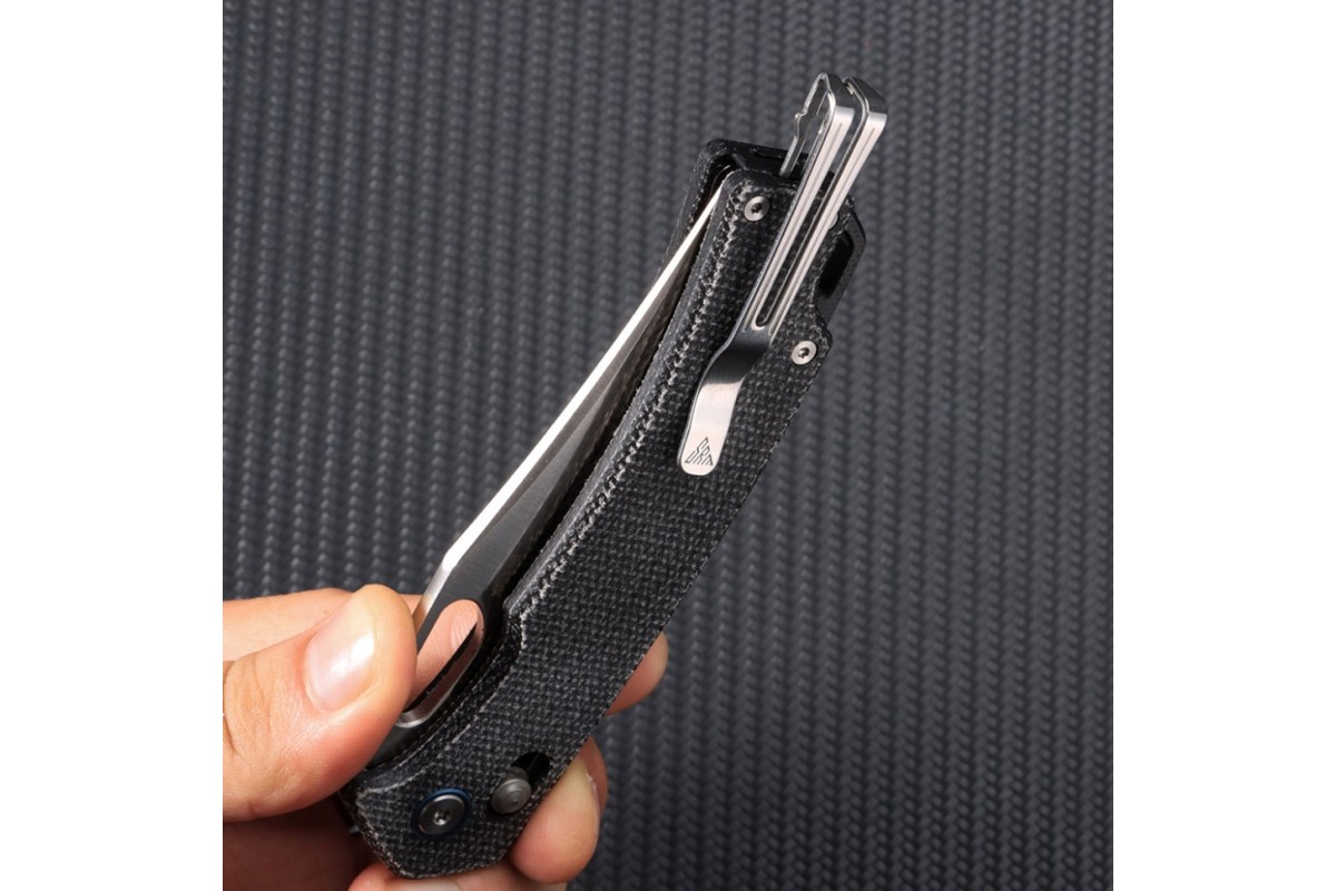 Рукоять изготовлена из микарты — прочного композитного материала с приятной текстурой, устойчивого к влаге, перепадам температуры и износу. Внутренние стальные лайнеры из нержавеющей стали 420 придают дополнительную жесткость конструкции. Шарикоподшипник в осевом узле обеспечивает плавное и быстрое открытие клинка, а замок Ambi Lock гарантирует надежную фиксацию и безопасность при работе.